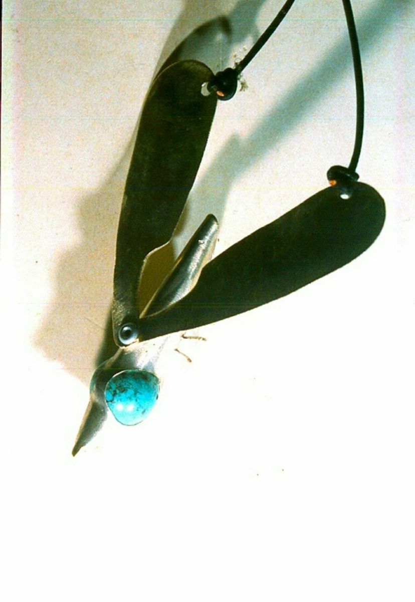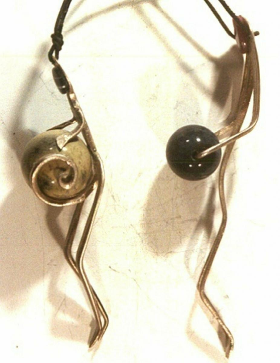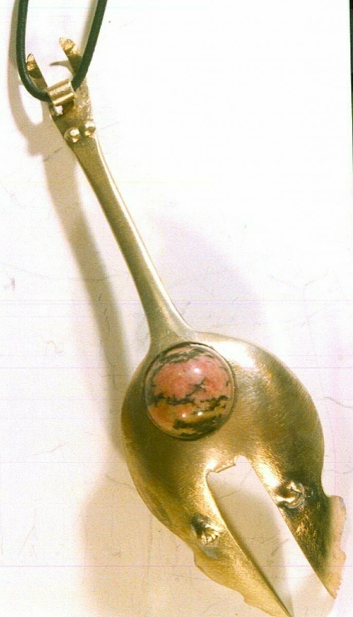 In unserer neuen Ausstellung in der Galerie Künstlerhof am Maskenmuseum ergänzen wir sie nun mit extravaganten figürlichen Designstücken aus Silber und wertvollen Steinen , die der Museumsbesitzer meist im Kaltschmiedeverfahren  aus dem 800-er-Silber von Löffeln und Gabeln gefeilt und gebogen hat. Perlentaucher sieht man da , die in der Tiefe mit letztem Atemzug und weit ausgestreckten Armen eine übergroße Südseeperle oder eine schwergewichtige Kugel aus roter Koralle zu halten versuchen. Ballspieler auch, die den schweren tiefblauen Lapislazuli mit beiden Händen fest an sich pressen, Artisten , die sich um das  Trapez aus grünem Amazonit schwingen. Kaum mehr zu erkennen ist dabei in den Menschengestalten immer die Grundform der viergezinkten silbernen Gabel, deren Zinken weiter aufgesägt und paarweise so in den Raum verdreht sind, dass sie Arme und Beine der Kleinplastik bilden. Tiere sind oft aus dem gewölbten Oval silberner Löffel z.B. mit in den in den Raum geklappten Scheren eines Krebses, der gerade an einem langen grünen Aquamarinkristall knabbert oder den aufgerichteten Ohren einer Maus, deren Augen aus blauem australischem Opal glitzern. Außergewöhnliche und doch relativ günstige Edelsteinkäufe, die hier platziert sind,   sind uns meist in anderen Ländern gelungen, wenn wir bewusst nach deutlichen Fehlern geschaut haben, die dem Stein zwar deutlich spürbar offiziellen Wert nahmen , für uns dagegen aber eben Eigenheit, ja ganz besondere Individualität in der Wirkung des Steines dargestellt haben.
