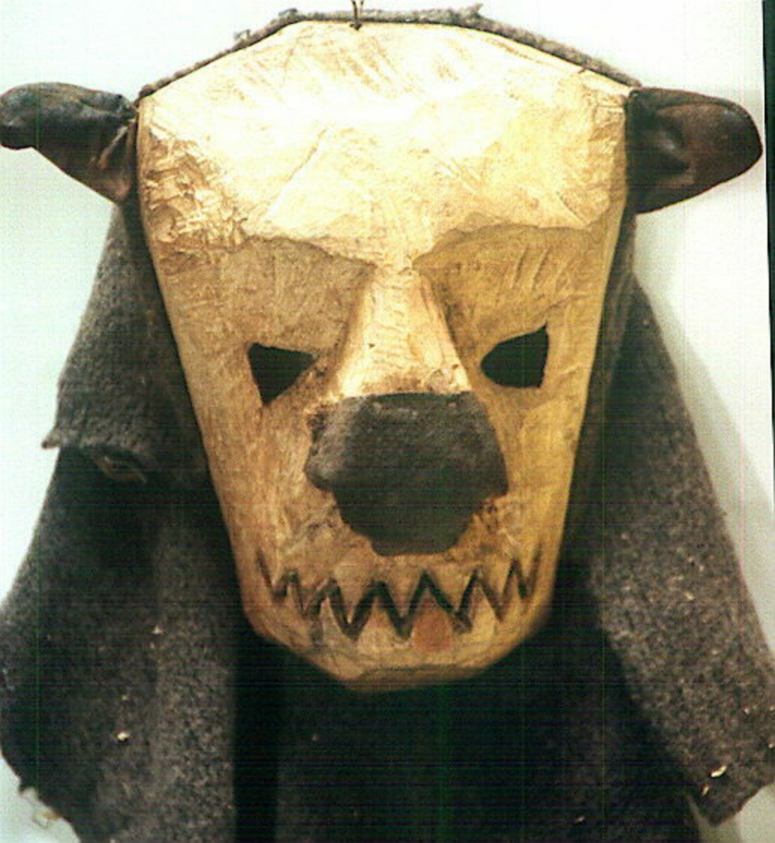 Am Ende des Festes wird der Jungbär hinaus in den Wald geführt. Mit schlichten Masken aus Birkenrinde verkleidete Männer brechen unerwartet aus dem Unterholz hervor, verhöhnen , ärgern und beleidigen den Bären, erklären sich als die Angehörigen eines fremden Volkes weit weg von diesen Gefilden und … erschlagen den Bären mitleidlos, zerfetzen ihn blutig. Von den anderen Begleitern wird der junge Bär unter lautem Wehklagen zurück ins Dorf gebracht, dort aufgebahrt, nach einer Weile lauten Klagens, bei dem sich Frauen und Männer im Rollenspiel gegeneinander immer wieder die Schuld am Tode des Bären zu schieben, wird der zerfetzte Leichnam des Bären abseits von den Männern zerlegt und die Einzelstücke von den Frauen gekocht und an alle Anwesende gleichermaßen verteilt. Auch die mittlerweile wieder ohne Maske dazu geeilten Bärentöter bekommen Ihren Anteil.